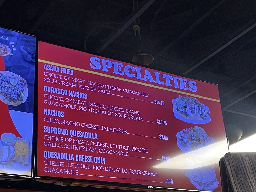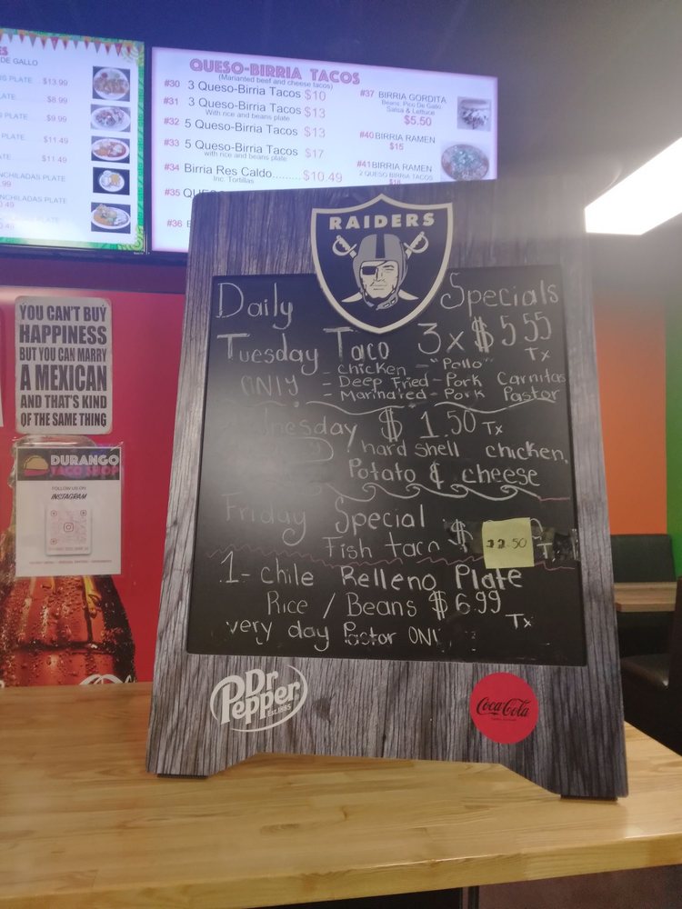 Durango Taco Shop is a casual dining spot located in Las Vegas, offering a variety of Mexican delicacies with a twist. The menu features mouth-watering options like Queso-Birria Tacos, Tortas with different fillings, and Gorditas for a satisfying meal. Customers rave about the flavorful birria dishes and the generous portion sizes, making it a go-to spot for authentic Mexican cuisine. The friendly staff and inviting atmosphere make dining here a pleasant experience. Don't miss out on the Chorizo Nachos and the delectable churros for a complete dining experience. Whether you're a fan of traditional favorites or looking to try something new, Durango Taco Shop is sure to impress with its diverse menu and affordable prices.